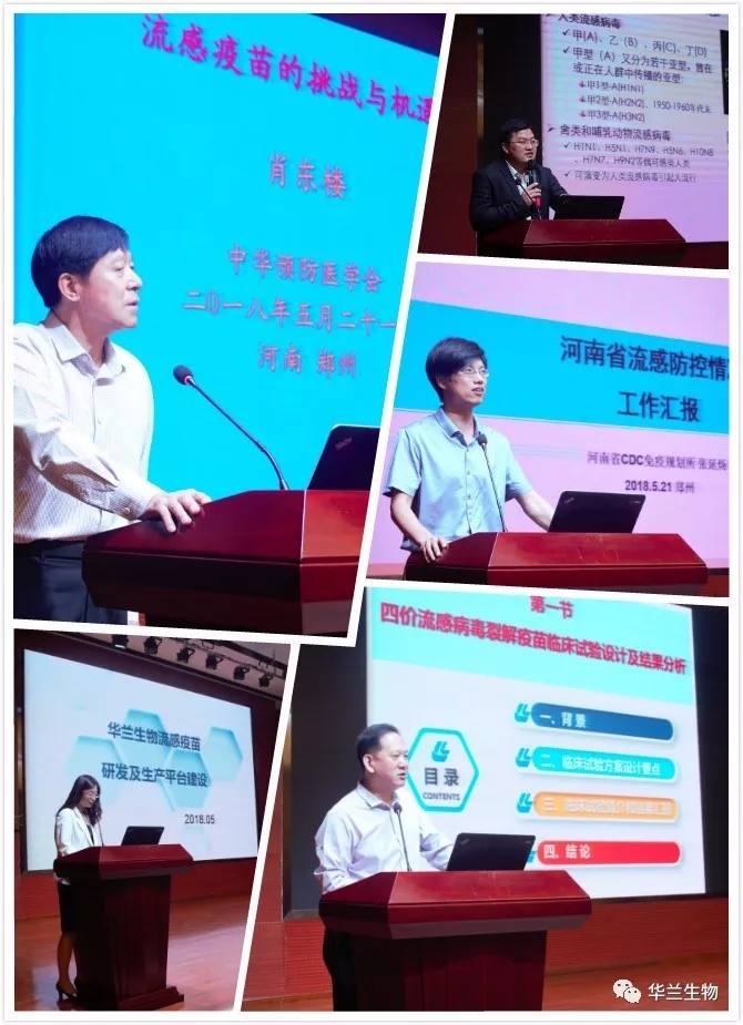 2018年5月21日,“大流行流感和季節(jié)性流感新型疫苗研究及應(yīng)用”研討會在中原經(jīng)濟區(qū)生物醫(yī)藥產(chǎn)業(yè)園舉辦,中華預(yù)防醫(yī)學(xué)會、中國疾病預(yù)防控制中心傳染病處、河南省疾病預(yù)防控制中心免疫規(guī)劃所、河南省疾病預(yù)防控制中心傳染病預(yù)防控制所、華蘭生物疫苗有限公司等單位的200多名專家領(lǐng)導(dǎo)和業(yè)內(nèi)人士蒞臨會議 。